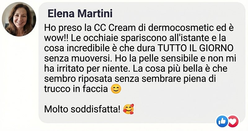 Il miglior acquisto! Ho provato correttori di brand costosi ma nessuno si paragona. DermoCosmetic copre perfettamente e non segna le pieghette. Qualità premium a prezzo giusto!