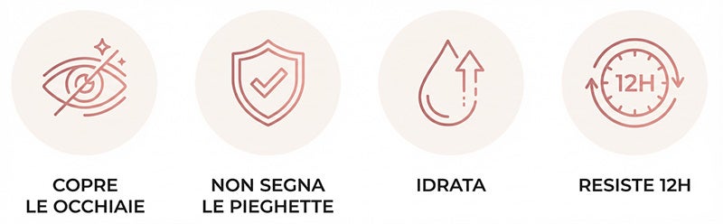 Non mi aspettavo funzionasse così bene! Le occhiaie spariscono completamente, non segna le pieghette e non evidenzia le rughe. Ho 45 anni e sembro 10 anni più giovane. Grazie!